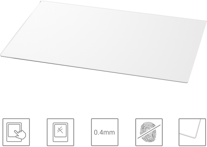 Caracteristici: Oleofob (anti-amprente), Hidrofob (anti-apă), adsorbție electrostatică (fără bule).
