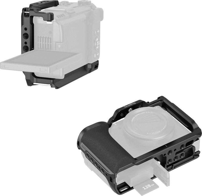 Acces nerestricționat la toate butoanele, compartimentul bateriei și sloturile pentru carduri de memorie. Designul full-cover al cage-ului SmallRig 5807 este gândit astfel încât montarea sa pe Canon PowerShot V1 să nu restricționeze accesul la nicio funcție a camerei. Compartimentul bateriei, sloturile pentru carduri de memorie, toate butoanele de control și porturile de conectivitate rămân complet accesibile cu cage-ul instalat. Fotograful sau videograful nu trebuie să demonteze cage-ul pentru operațiuni obișnuite de teren – schimb de baterie, schimb de card sau conectare cablu.