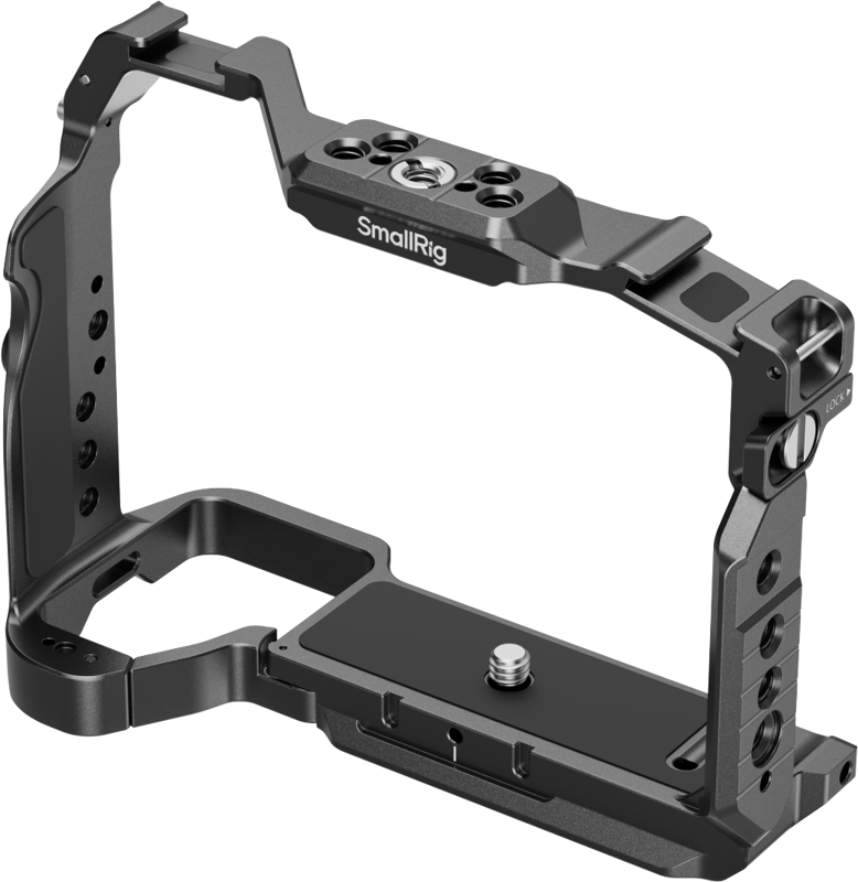 SmallRig 6024 nu este doar un simplu cage de protecție; este fundația celui mai rapid sistem de rigging de pe piață. Integrând tehnologia HawkLock Quick Release, acest model elimină timpii morți cauzați de înșurubarea clasică a accesoriilor. Punctele de montare dedicate (amplasate strategic pe partea superioară și laterală) permit atașarea mânerelor și a suporturilor de monitor printr-un singur "click", garantând o fixare solidă fără joc mecanic.