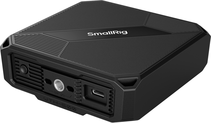 7 puncte de montaj cu filet 1/4"-20 distribuite pe toate fețele (sus, jos, lateral) + 4 găuri pentru curea – compatibilitate completă cu accesoriile SmallRig și cu orice sistem de montare standard. Corpul compact al SmallRig 5566 integrează 7 filete 1/4"-20 cu pini anti-rotație, distribuiți pe fețele superioară, inferioară și laterale, permițând fixarea pe trepied (direct sau cu adaptor), pe o cușcă de cameră, pe un rig, pe un support de microfon sau pe orice suprafață cu filet standard. Compatibilitatea nativă cu accesoriile SmallRig include suportul pentru power bank (2790) și placa mini V-lock (2801) – permițând alimentare continuă de la power bank-uri standard sau baterii V-mount direct pe dispozitiv, fără cabluri agățate. Cele 4 găuri pentru curea permit securizarea unui lanyard pentru transport sigur pe teren.