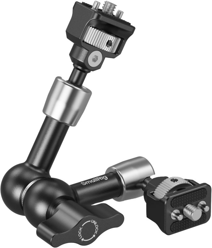 Este prevăzut cu două șuruburi 1/4"-20 și pini retractabili la ambele capete, permițând atașarea la cleme în formă de crab pentru monitoare, lumini video, microfoane, smartphone-uri și camere de acțiune. Acest braț magic previne în mod eficient răsucirea dispozitivelor care dispun de orificii anti-twist cu aceleași specificații, asigurând o fotografiere sigură și stabilă.