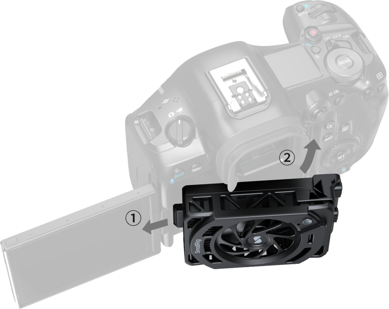 Designul mecanic și punctele de fixare sunt calibrate milimetric pentru șasiul modelelor EOS R5 și R5 Mark II. Nu recomandăm forțarea sistemului de prindere pe alte modele, deoarece contactul termic nu va fi optim.
