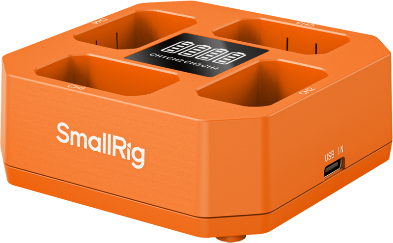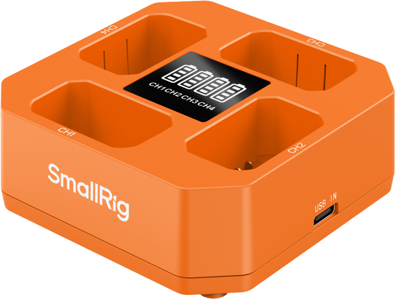 SmallRig 5749 detectează automat puterea adaptorului conectat și ajustează numărul de canale active pentru a optimiza viteza de încărcare. Cu un adaptor USB-C PD de 24W (15V/1.5A), toate cele 4 canale se activează simultan și încarcă bateriile în paralel. Cu un adaptor mai mic (9V/2A), încărcătorul activează doar 2-3 canale pentru a asigura încărcare stabilă și sigură. Acest sistem permite utilizarea oricărui adaptor disponibil, de la cel mai simplu 5V/1A până la PD rapid, oferind flexibilitate maximă pe teren.