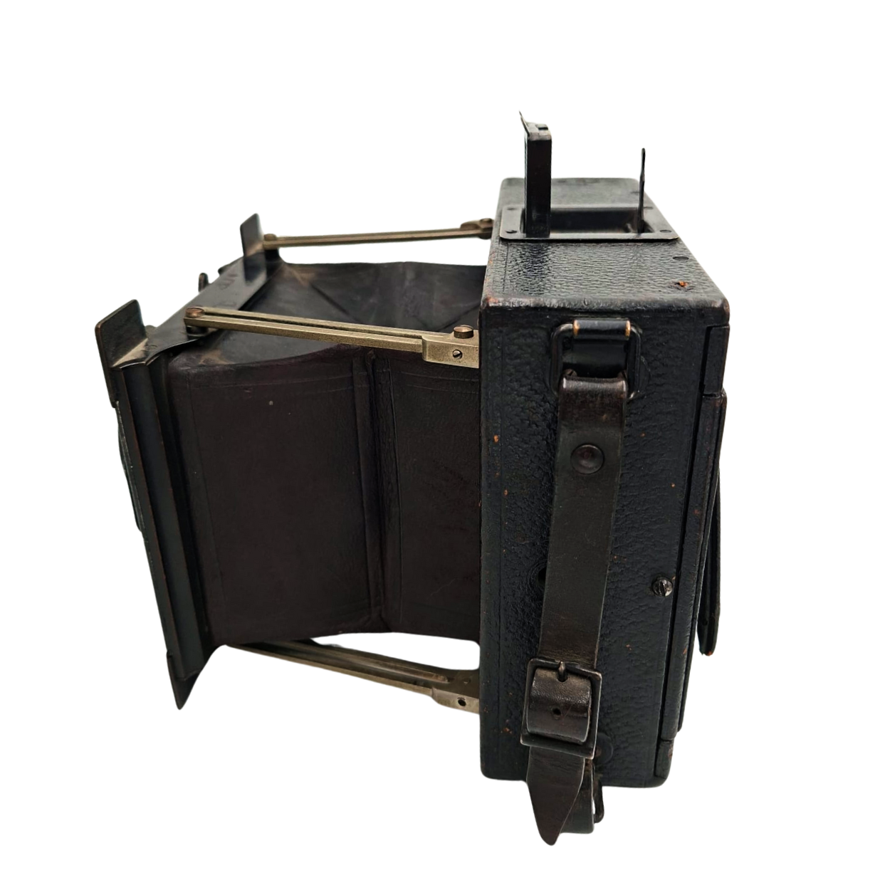 • Obiectiv Carl Zeiss Jena 15cm f/4.5: Marcat conform standardelor epocii ca "15 cm" (echivalentul a 150mm astăzi), acest obiectiv este cel mai probabil un design Tessar, renumit pentru claritatea sa ("Ochiul de Vultur"). Diafragma f/4.5 era considerată rapidă pentru formatul mare, permițând timpi de expunere mai scurți.