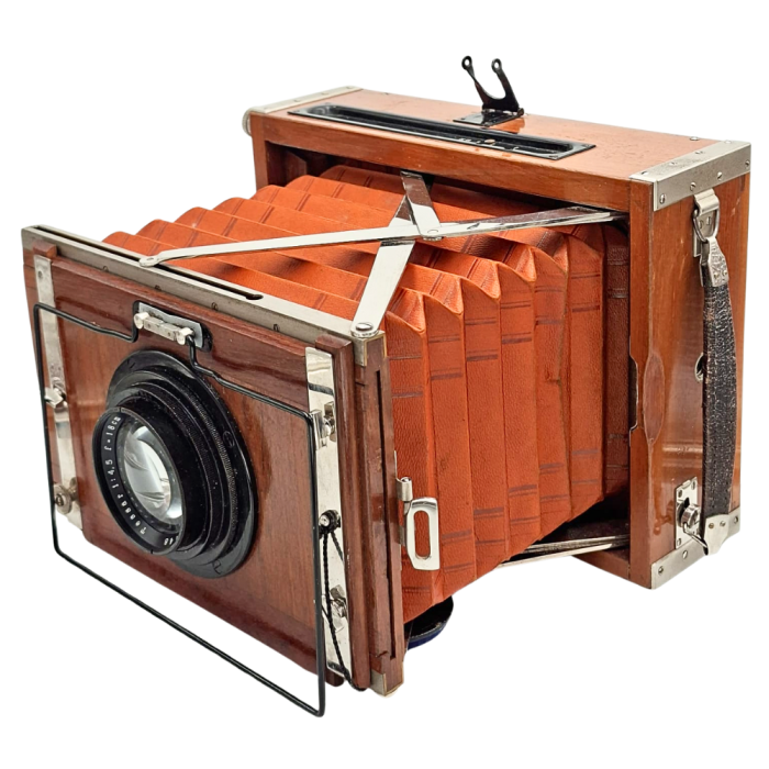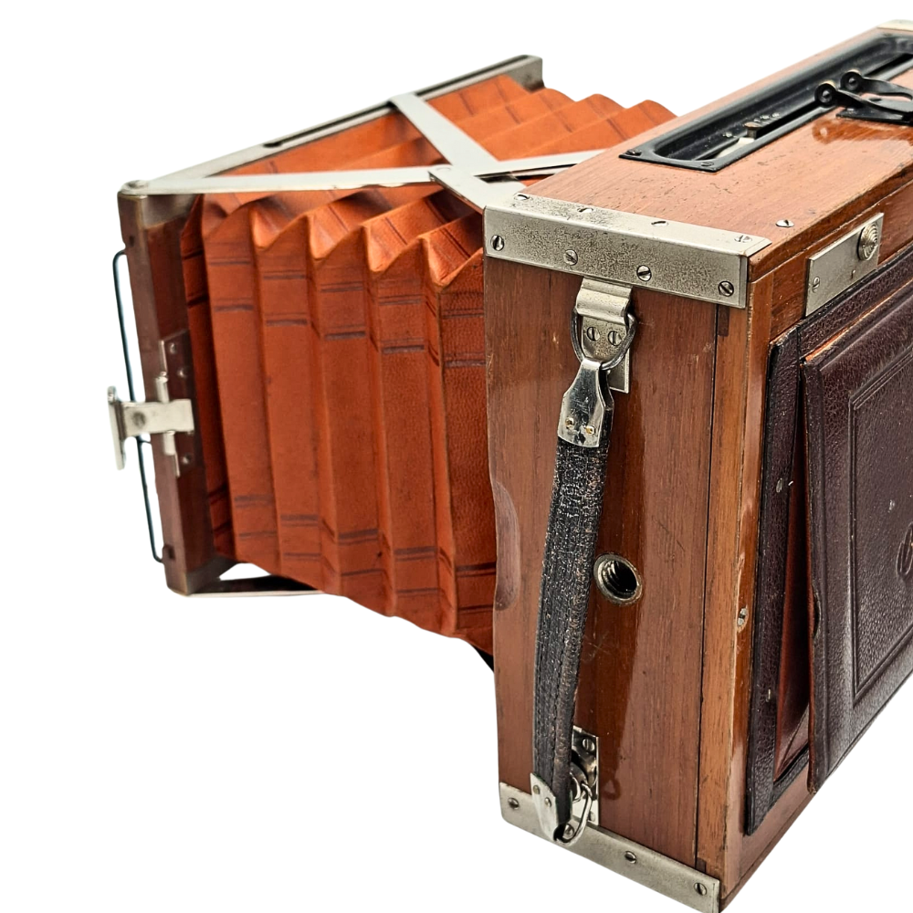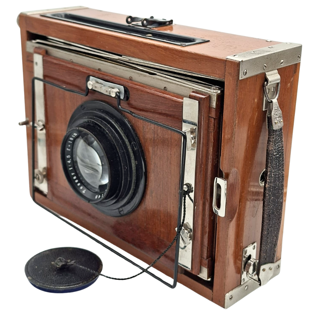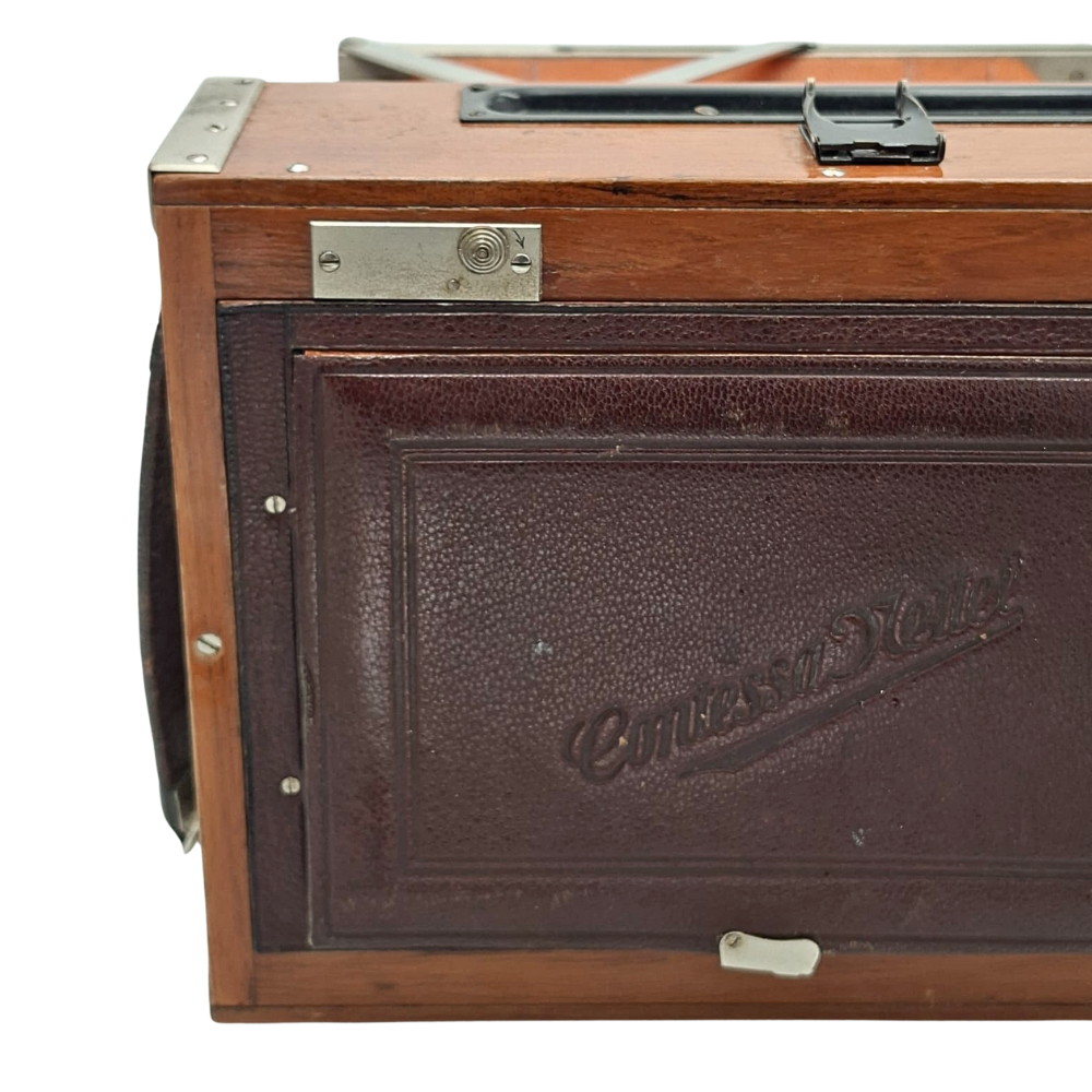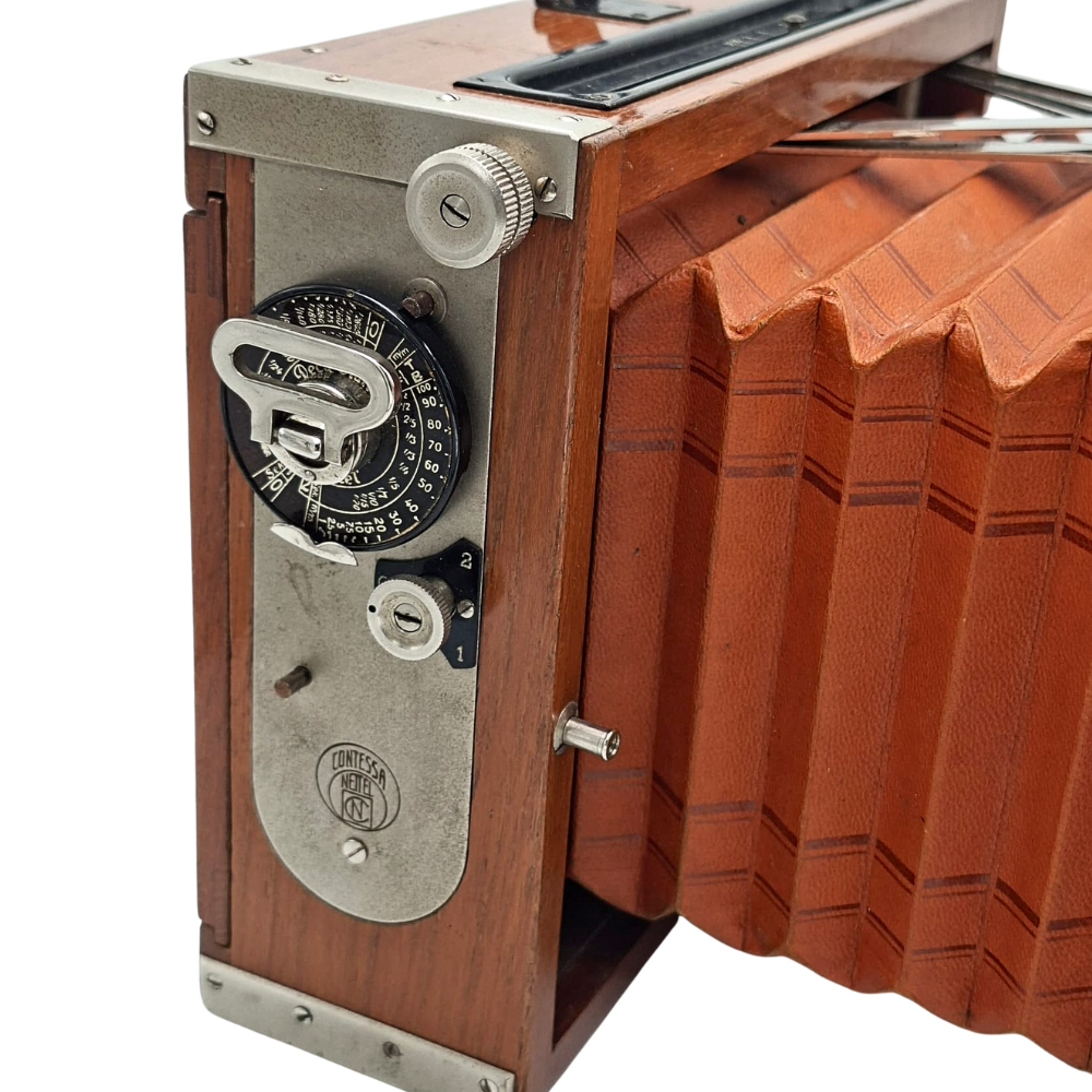 Contessa-Nettel Deckrullo Tropical 13x18 este "Sfântul Graal" al camerelor de presă vintage. Combinația rară dintre formatul mare, lemnul de tec și optica Zeiss de 180mm o transformă într-o investiție sigură și o piesă de discuție fascinantă.