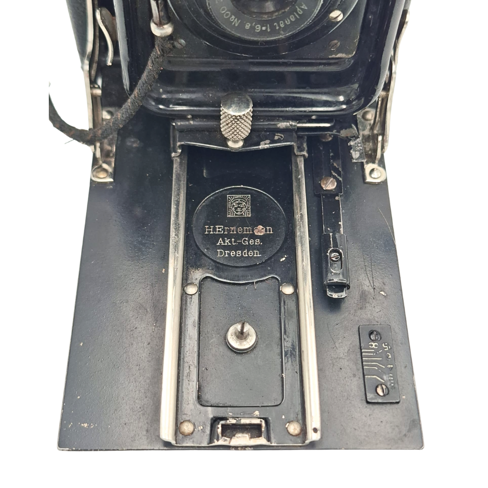 Ernemann-Werke din Dresda a fost o forță dominantă în fotografia europeană de la începutul secolului XX. Renumiți pentru inovație și calitatea optică, ei au produs camere legendare înainte de a fi absorbiți de Zeiss Ikon în 1926. Obiectivul "Detective Aplanat" a fost o semnătură a companiei, denumirea sugerând că optica era suficient de luminoasă și rapidă pentru a permite realizarea fotografiilor instantanee ("de detectiv"), fără trepied, o raritate tehnologică la acea vreme.