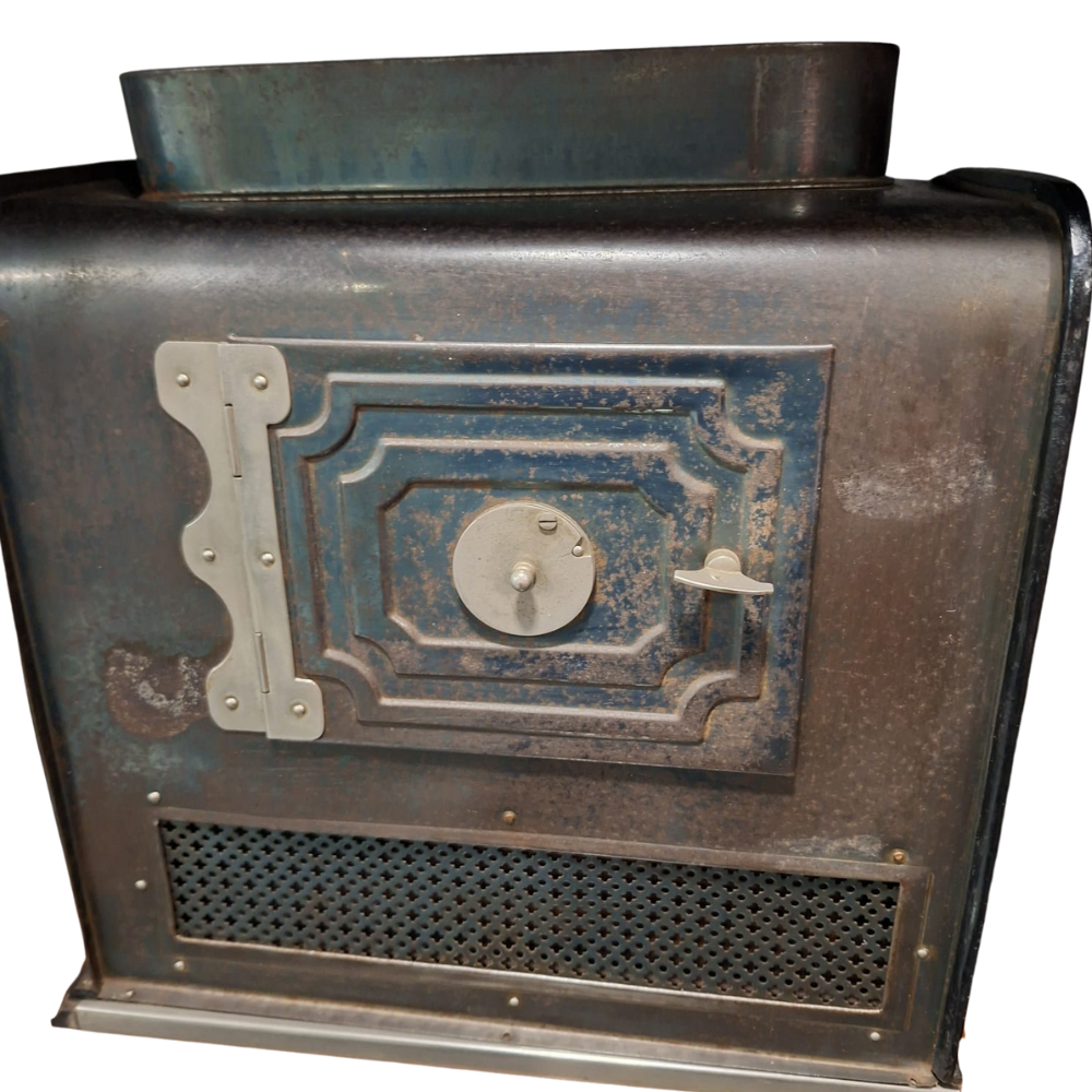 Estetică Industrială Antică: Corpul metalic masiv, cu grilaje de ventilație și detalii ornamentale, sugerează o construcție robustă, specifică instrumentelor optice profesionale de epocă.