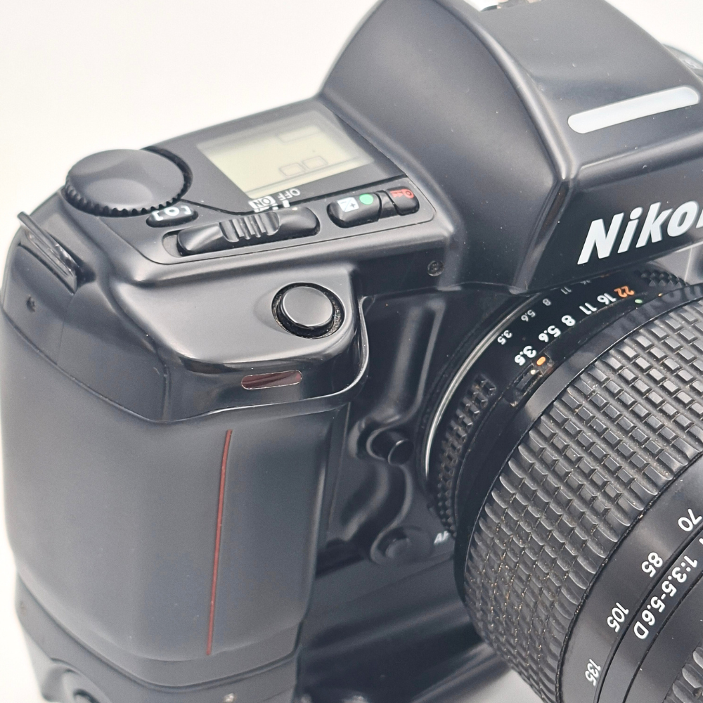 Spre deosebire de aparatele moderne care necesită acumulatori proprietari scumpi, Nikon F90X este alimentat de 4 baterii standard de tip AA (R6), introduse direct în baza aparatului. Acest lucru îl face partenerul ideal de călătorie, bateriile fiind disponibile oriunde în lume. Motorul de autofocus integrat în corpul camerei (screw-drive) asigură o focalizare rapidă și precisă pentru obiectivul inclus, dar și compatibilitatea cu o gamă uriașă de obiective Nikon AF din generațiile anterioare.
