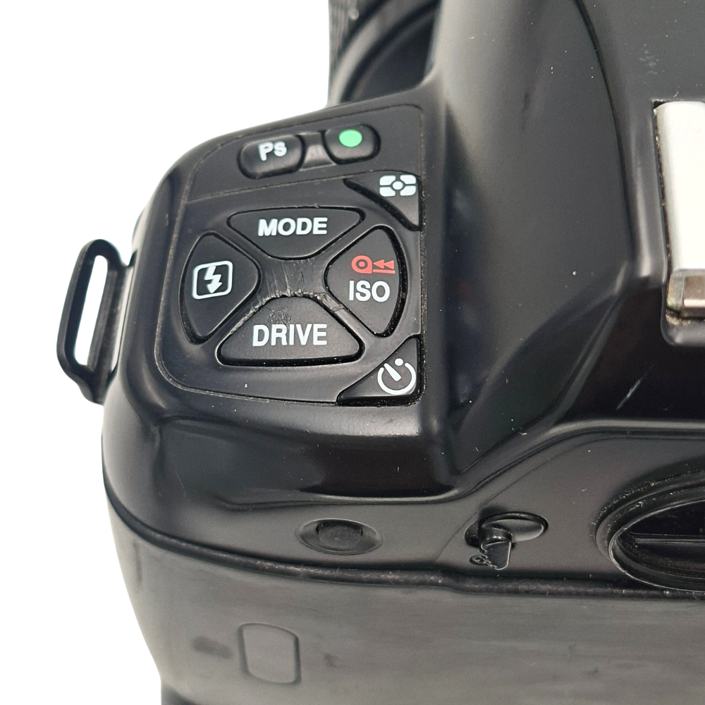Nikon F90X este construit pe un șasiu interior din aliaj metalic, îmbrăcat într-un policarbonat dur de înaltă densitate, oferind un echilibru excelent între robustețe și greutate. Grip-ul cauciucat asigură o prindere fermă, esențială atunci când este montat un obiectiv cu plajă focală mare, precum 28-200mm. Comenzile sunt dispuse logic, cu butoane dedicate pentru modul de expunere (P, S, A, M), sensibilitatea ISO și modurile de declanșare, facilitând ajustări rapide fără a lua ochiul de la vizorul luminos și generos.