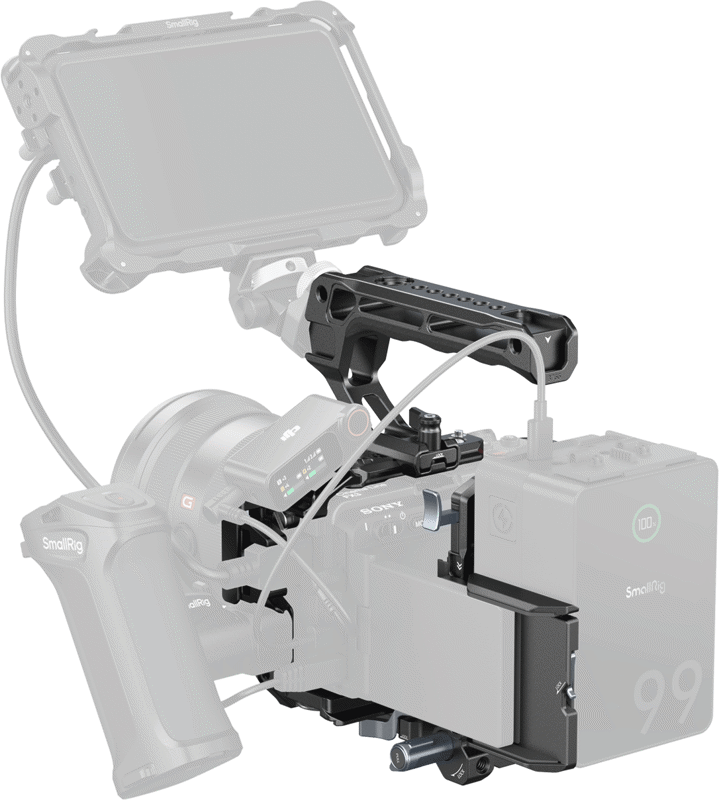 Modularitate NATO Avansată: Șina NATO superioară este detașabilă. Vrei să folosești mânerul original Sony XLR pentru sunet profesional? Scoate șina și montează-l direct. Vrei un setup compact "run-and-gun"? Montează mânerul SmallRig inclus pentru un profil redus.
