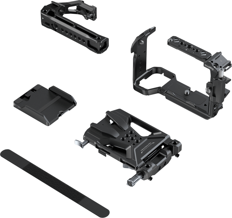 SmallRig 5823 Cage Kit este răspunsul definitiv. Acest kit "all-in-one" nu doar protejează investiția ta; o evoluează. Prin integrarea ingenioasă a unei plăci V-Mount rabatabile și a unui mâner superior ergonomic, SmallRig transformă micul tău FX3 într-un sistem de producție robust, echilibrat și alimentat pentru maratoane de filmare, păstrând în același timp profilul compact care te-a făcut să alegi Sony.