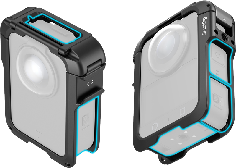 Oferă protecție completă și extensibilitate într-un design ușor. Construit din aliaj de aluminiu durabil, acesta cântărește doar 48g. Cușca cu acoperire completă are un suport de protecție a obiectivului pliabil care protejează obiectivul de impacturi, menținând în același timp o cusătură fără sudură a imaginii la 360°.