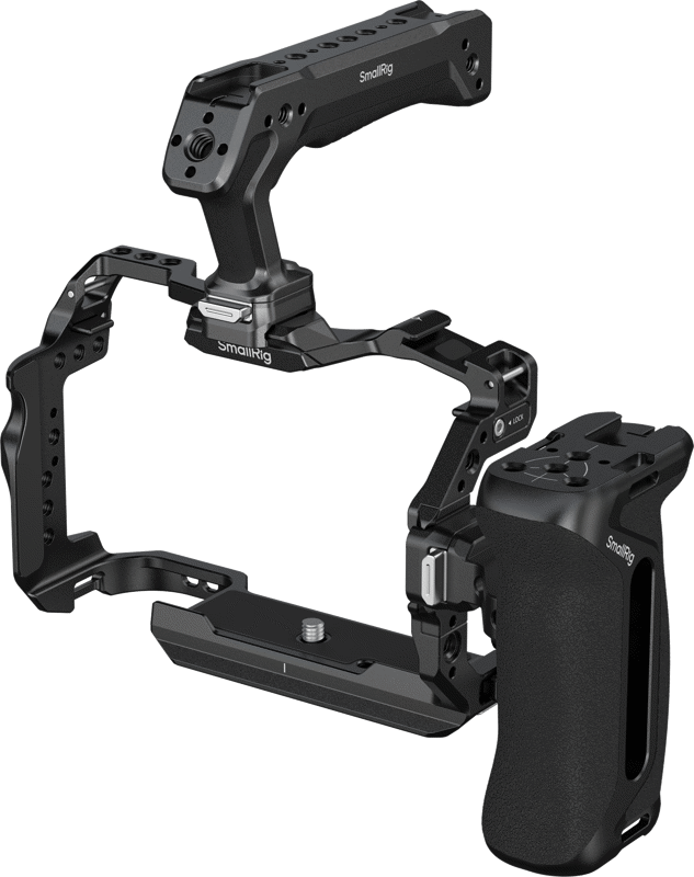Expert realizat pentru a îmbunătăți experiența de fotografiere manuală, oferind în același timp o protecție cuprinzătoare a camerei și opțiuni de montare versatile. Kitul include o cușcă, un USB-C & clemă pentru cablu HDMI, un mâner superior "HawkLock" și un mâner lateral "HawkLock".