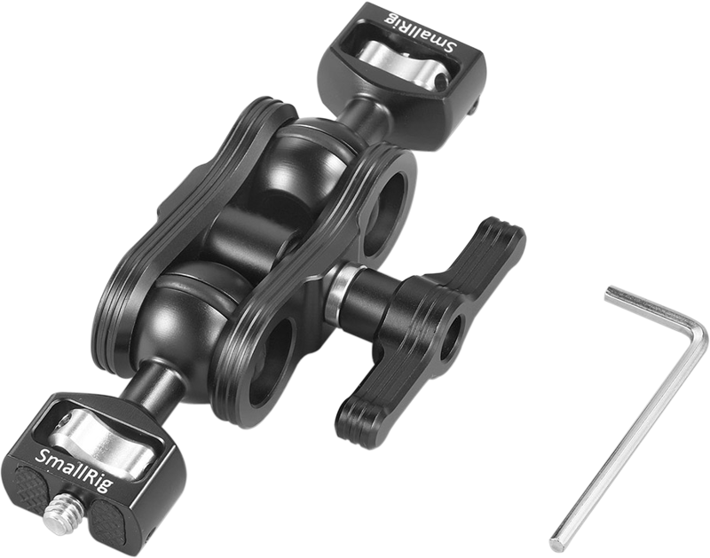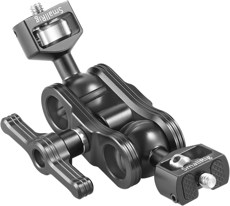 SMALLRIG 2070 Braț articulat cu capuri duble cu bilăinclude capuri duble cu bilă cu șuruburi de 1/4'' la ambele capete și o clemă pentru cap de bilă.Se poate atașa cușca cu găuri filetate de 1/4"-20, cum ar fi SmallRig Sony Camera Cage 1661 sau placa de sus cu găuri filetate de 1/4"-20, cum ar fi SmallRig Top Plate 1853/1974/2032 la un capăt, iar la celălalt capăt se poate atașa și monitorul cu găuri filetate de 1/4"-20.Dispune de un șurub pentru degetul mare la fiecare capăt pentru a bloca manual dispozitivul.Monitorul montat pe el ar putea fi ajustat în diferite poziții și unghiuri prin intermediul capului cu bilă și al clemei pentru cap cu bilă, iar pentru a bloca direct și strâns capul cu bilă dublă se aplică un singur piuliță cu aripi.Este echipat cu inele O pentru a crește frecarea cu clema capului cu bilă și a preveni zgârieturile și perne de cauciuc pentru a preveni zgârieturile monitorului.**Pachetul include: **2 x cap cu bilă cu șurub de 1/4"1 x clemă pentru capul cu bilă1 x cheie hexagonală