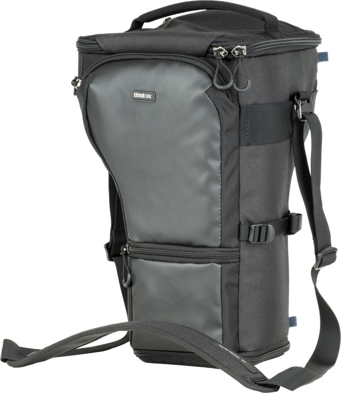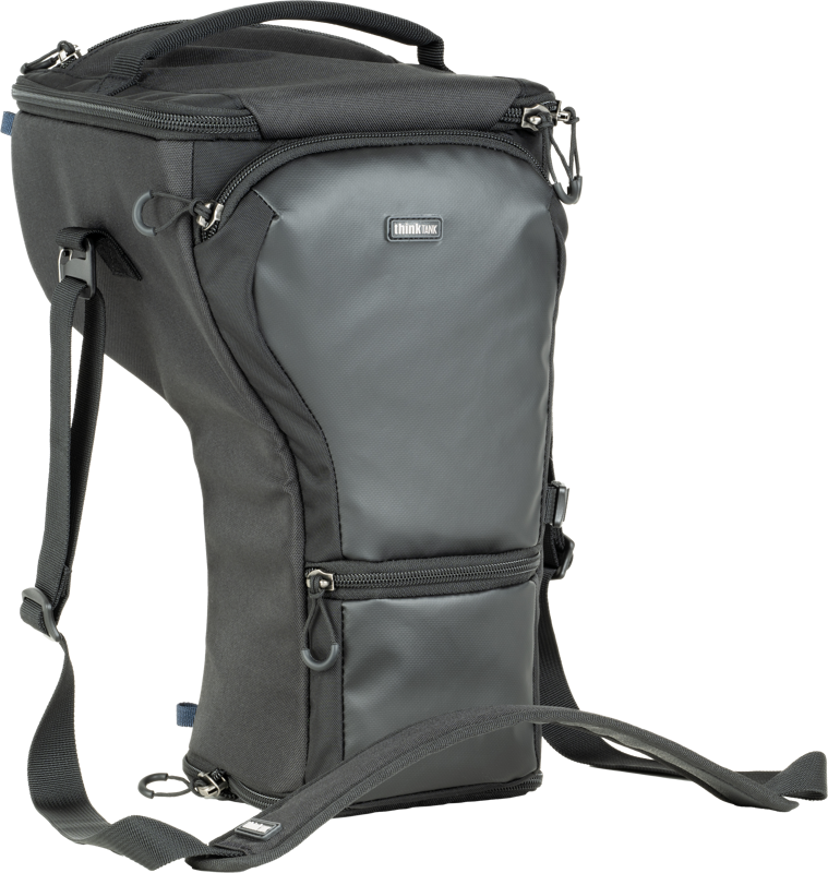 Ergonomie: Se poate atașa la orice centură modulară Think Tank (sau o curea proprie), la sistemele de rucsac (ex: Pro Speed Belt), sau purtată independent cu cureaua de umăr inclusă. Spatele căptușit oferă confort suplimentar la purtarea pe centură.