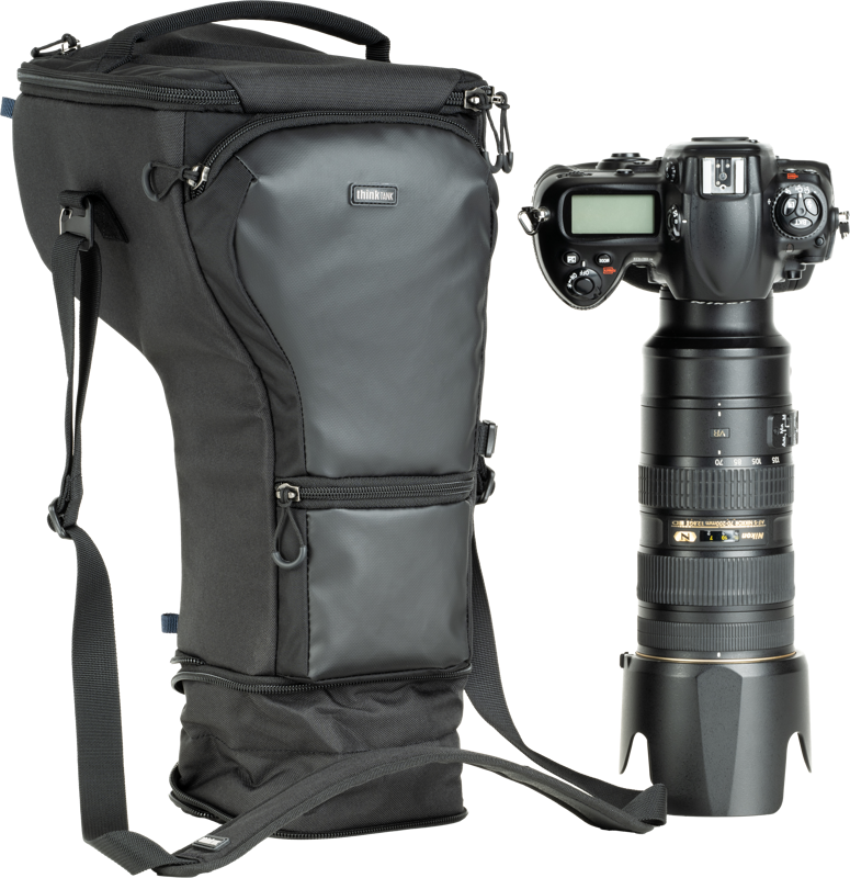 Think Tank Digital Holster 50 V3 a fost concepută pentru a satisface cerințele fotografilor care au nevoie de o soluție compactă, dar robustă, pentru un sistem profesional complet: DSLR Pro cu grip montat sau un Mirrorless de dimensiuni mari, echipat cu obiective voluminoase.