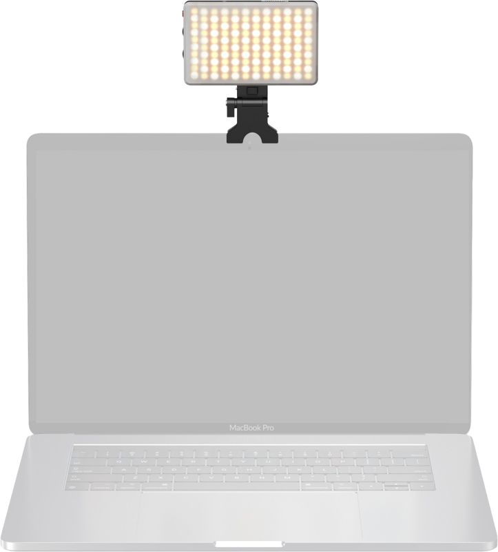 Clema inclusă, cu sistem de eliberare rapidă, permite montarea luminii deasupra sau lateral față de camera laptopului ori pe marginea unui monitor, cu un unghi de înclinare de până la aproximativ 170°, astfel încât poți plasa sursa ușor deasupra liniei ochilor (unghi mai flatant pentru față). Pentru telefon, clipul se poate folosi și ca mini "hot-shoe" improvizat pe un trepied mic sau rig de mobil.