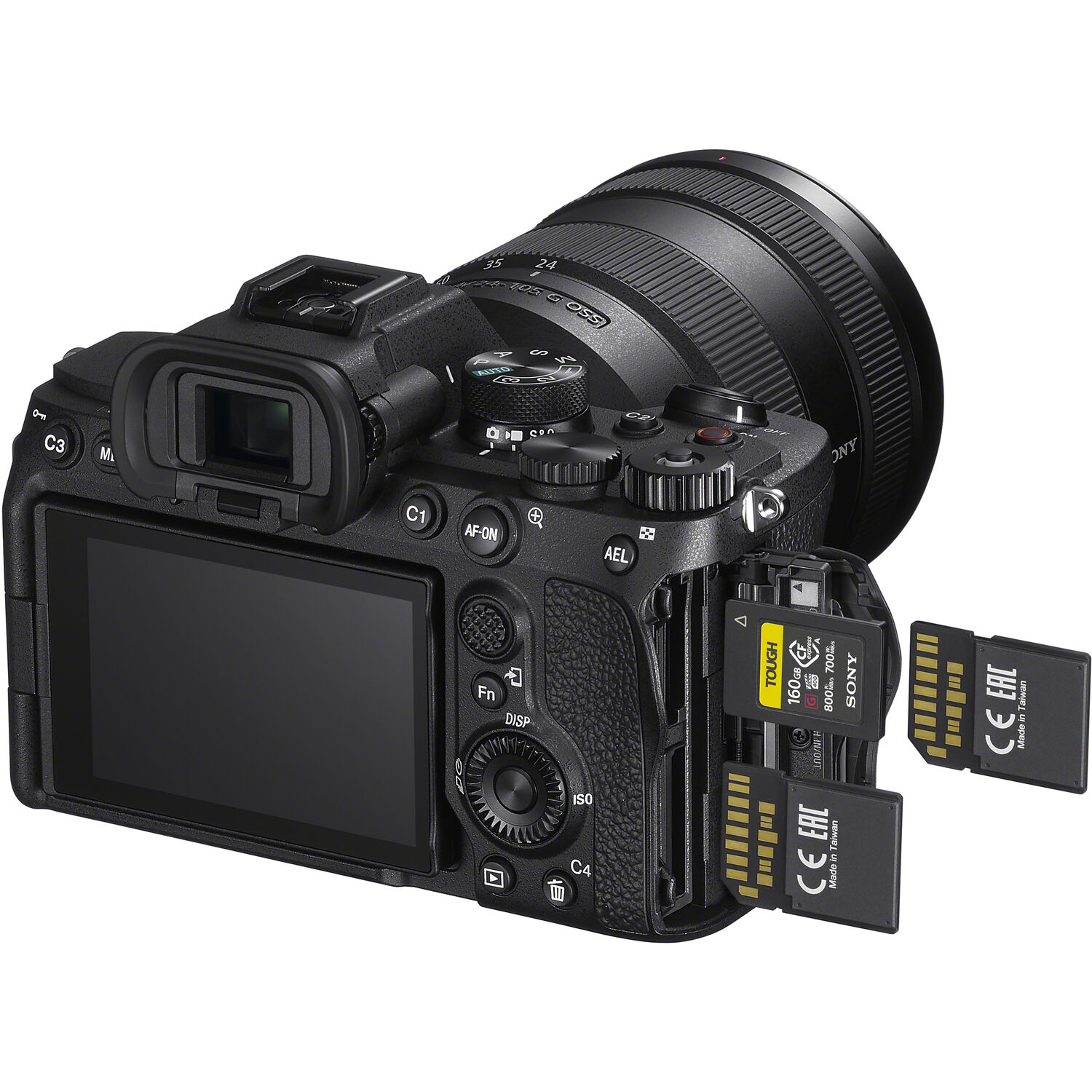 Memorie suportata: 2 x Slotruri. Slot 1: multiplu pentru card SD (UHS-I/II) si introdus invers card Cfexpress tip A. Slot 2: simplu pentru card SD (UHS-I/II)
