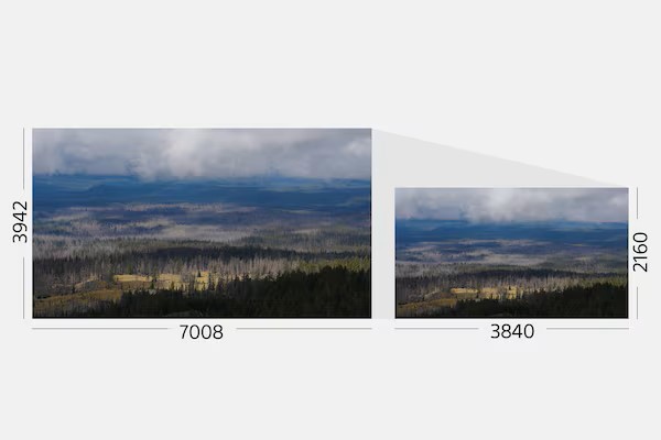 Supraeșantionare 7K din înregistrare 4K 60p cu citire completă a pixelilor și fără combinarea pixelilor