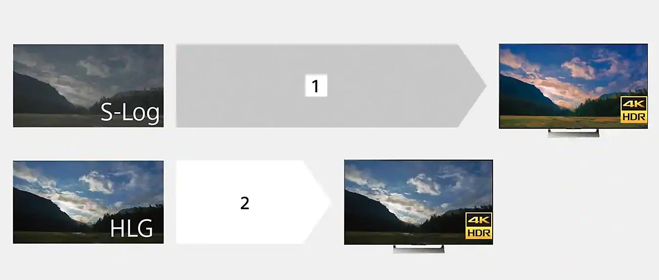 HLG (Hybrid Log Gamma) simplifică producția HDR, realizând filmări pentru televizoare BRAVIA compatibile HLG și gradări cursive cu profunzime a culorilor pe 10 biți.
