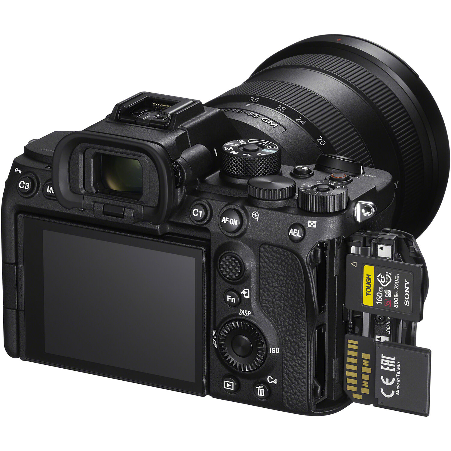 Memorie suportata: 2 x Slotruri penrtu card SD / CFexpress A. In ambele se pot folosi carduri SD (compatibil UHS-I/II) sau introduse in sens opus carduri CFexpress tip A