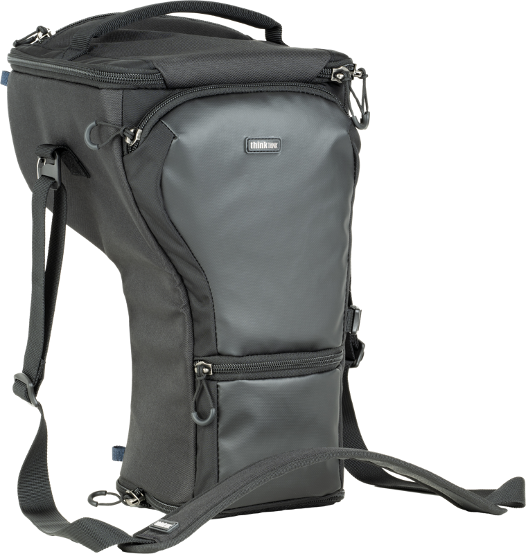 Ergonomie: Se poate atașa la orice centură modulară Think Tank (sau o curea proprie), la sistemele de rucsac (ex: Pro Speed Belt), sau purtată independent cu cureaua de umăr inclusă. Spatele căptușit oferă confort suplimentar la purtarea pe centură.