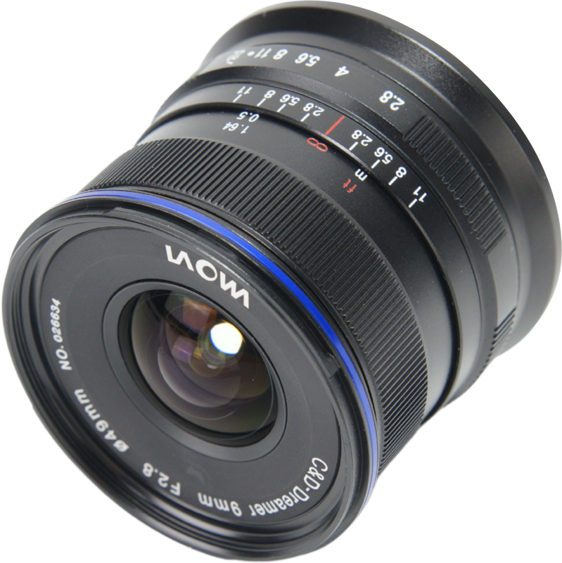 Carcasa obiectivului este realizată integral din aliaj metalic, oferind un finisaj premium și durabilitate, protejând cele 15 elemente optice dispuse în 10 grupuri (inclusiv două elemente asferice și trei elemente cu dispersie extra-redusă). Deși este extrem de robust, Laowa 9mm impresionează prin dimensiunile sale liliputane: are o lungime de doar 53mm și o greutate de 215g. Inelele de diafragmă și de focus se mișcă fluid, oferind un control tactil precis, specific obiectivelor complet manuale.