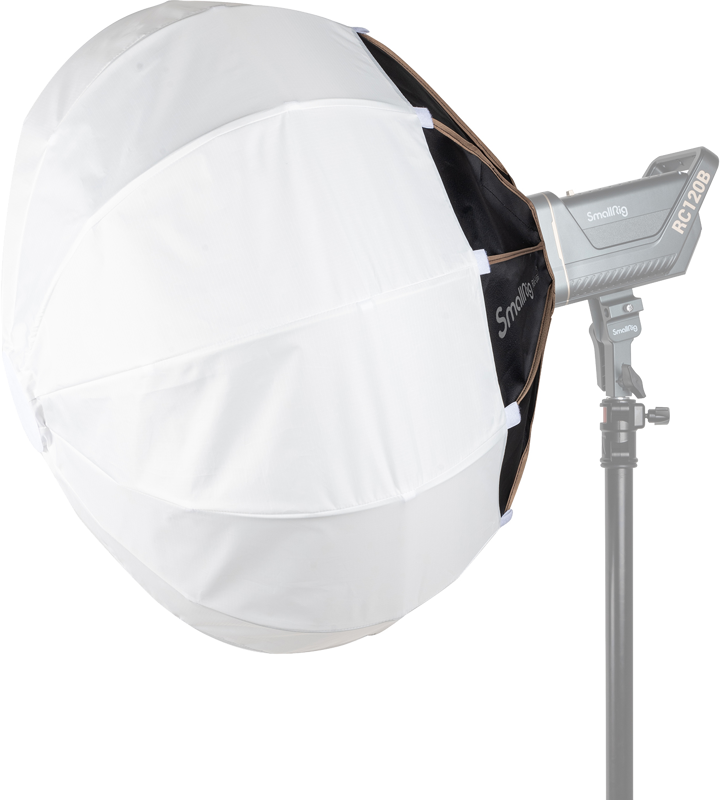 SmallRig 3754 RA-L65 Lantern Softbox este un modificator de lumină în formă de felinar cu diametru de 65 cm, proiectat pentru a produce o lumină sferică omnidirecțională moale, uniformă și la scară largă – specifică tipului lantern softbox. Cu un unghi de radiație de 270°, RA-L65 iradiază lumina în toate direcțiile, nu doar înainte, creând efecte de umplere naturale și reflexii realiste în ochi (catchlights rotunde) – diferit față de softbox-urile rectangulare sau octagonale. Montura Bowens standard asigură compatibilitate cu marea majoritate a monolight-urilor și capetelor de bliț disponibile pe piață. Sistemul de asamblare integrat în un singur pas – cadru + difuzor + velcro – permite instalarea și demontarea în 3 secunde, fără proceduri complexe. Pachetul include barn doors din material textil flexibil și o geantă de transport pentru depozitare și transport.