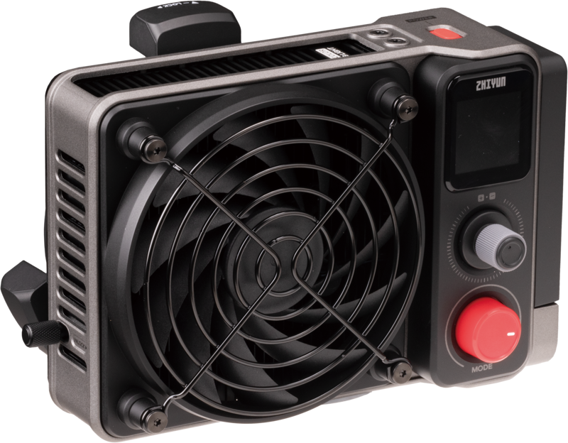 Zhiyun Molus X200 Bi-Color produce 8,900 lux la 1m cu reflectorul Lens Bowens inclus — și 5,500 lux bare light (fără reflector, la 5500K) conform specificațiilor oficiale. Această performanță de output plasează X200 Bi-Color în categoria lămpilor profesionale de locație de 200W, în concurență directă cu fixture-uri de 2–3× mai grele. Spre comparație, varianta RGB a aceluiași model produce 7,780 lux bare light și 19,000 lux cu reflectorul — X200 Bi-Color, cu chip-ul optimizat exclusiv pentru temperaturi de culoare neutre (fără energie dedicată canalelor R/G/B), poate produce un output bare light superior variantei RGB în anumite condiții de utilizare la CCT 5500K. Sistemul de răcire back-pressure fan activ silențios menține temperatura corpului lămpii în parametri optimi pe durata utilizărilor prelungite la putere maximă.