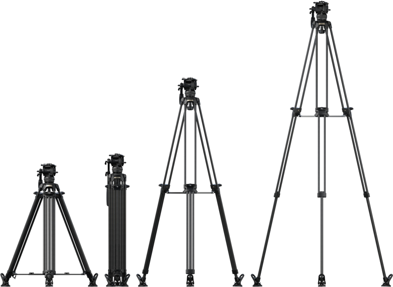 93.6cm este înălțimea minimă cu toate segmentele retrase. Aceasta este o înălțime de lucru tipică pentru unghi de piept sau de umăr al unui operator în picioare — nu este un trepied low-angle specializat. Pentru unghiuri sub 50cm, FSD16 5580 necesită fie extinderea parțială a picioarelor la un unghi lateral (spreader deschis complet), fie completarea cu un cap sau un slider separat pentru filmarea la nivel de sol. Domeniu tilt de -60° al capului fluid permite orientarea camerei semnificativ în jos și de la înălțimea minimă de 93.6cm — suficient pentru planuri de detaliu în jos și pentru perspectivele low-angle moderate fără să necesite poziționarea la sol a trepiedului.