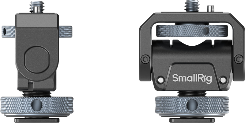 SmallRig 3809 Monitor Mount Lite cu sabot receSabotul său rece inferior se potrivește la sabotul cald al camerei sau la sabotul rece al mânerului.Șurubul superior de 1/4"-20 suportă monitorul, microfonul, lumina etc.Se poate roti la 360° și se poate înclina la 180°, gradul de strângere fiind reglat cu ajutorul unei chei.Orificiul filetat de 1/4"-20 din partea inferioară îi permite să atașeze brațul Magic Arm 2070 de la SmallRig, capul cu bilă 1135, etc.Șurubul de sus și cel de jos au găuri pentru cheie pentru a putea fi dezasamblate cu ușurință.De asemenea, partea sa superioară este prevăzută cu o plăcuță de protecție din cauciuc pentru mai multă fricțiune și pentru a preveni deformarea.**Compatibilitate: **Monitoare de 5" și 7", accesorii cu o greutate mai mică de 3,2 kg.În cutie:1 x suport pentru monitor1 x Cheie Allen